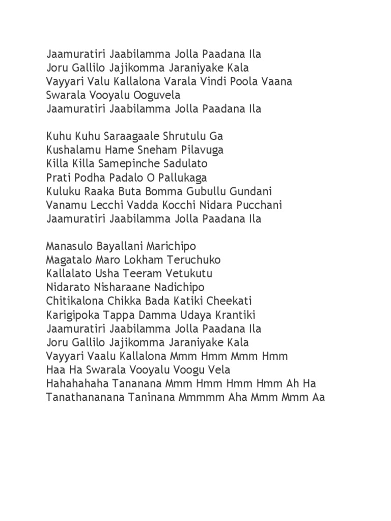 Jaamu Rathiri Lyrics : ★ myfreemp3 helps download your favourite mp3 songs download fast, and easy.