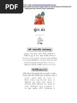 Sunderkand Lyrics In Gujarati : Hanuman is one of the most popular devotees of god in hinduism.